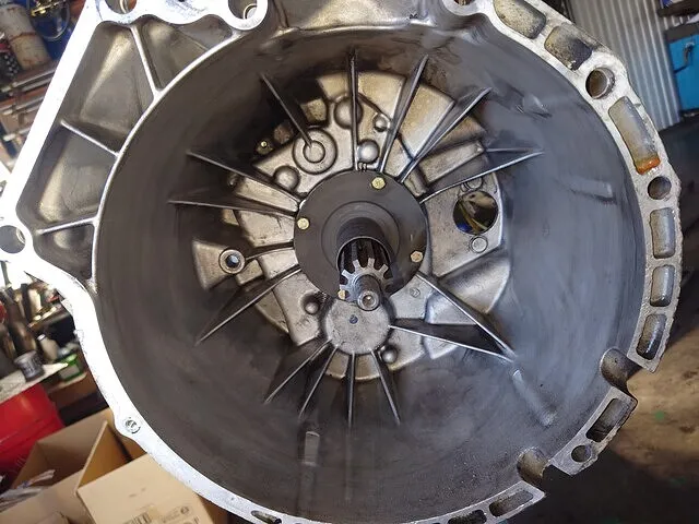 特にフライホイールやレリーズベアリングなどは、長年の使用で油分やホコリがしっかり付着。