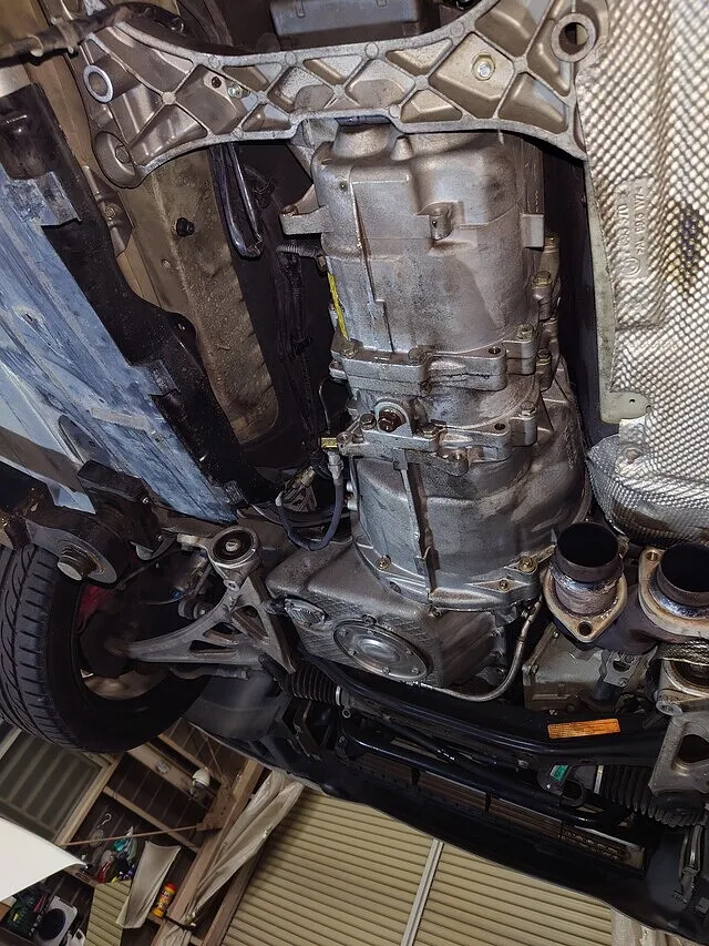 まずは外したトランスミッションを丁寧に車体へ戻します。